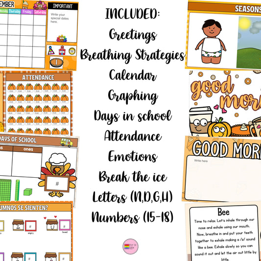 November +400 Google Slides. Thanksgiving Theme. PreK,Kindergarten & Elementary
