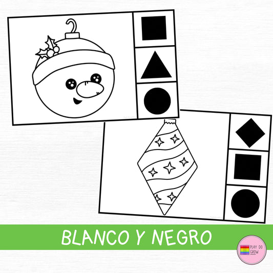 Figuras 2D Tarjetas para Pinzas. Temática Navideña | Preescolar y Primaria. Juego Geometría
