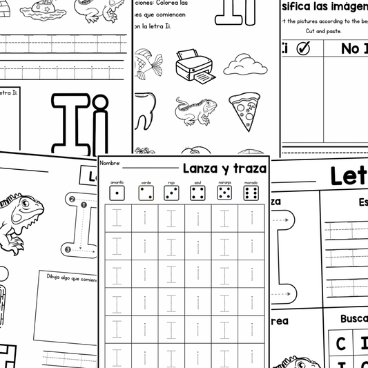 Letra I - Letra de la Semana. 12 Hojas de trabajo | Preescolar y Primaria