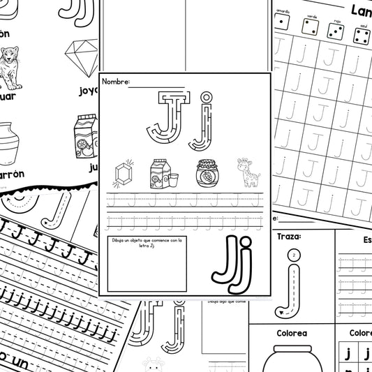 Letra J - Letra de la Semana. 12 Hojas de trabajo | Preescolar y Primaria