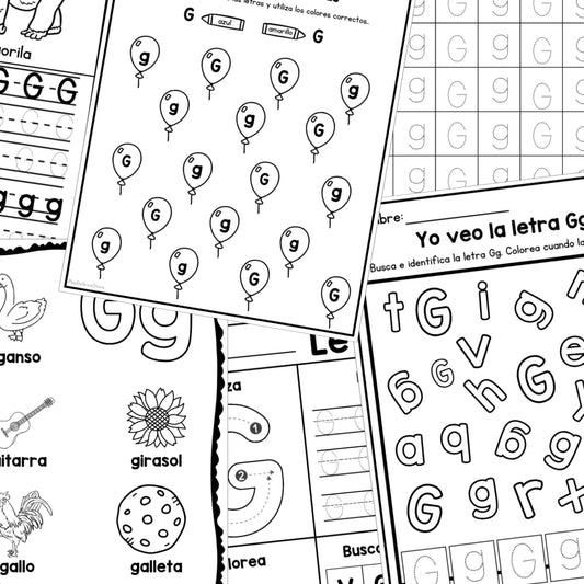 Letra G - Letra de la Semana. 12 Hojas de trabajo | PreK & Kindergarten