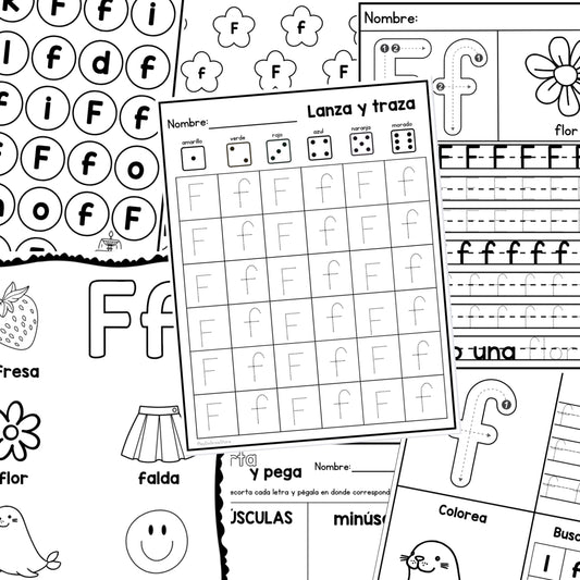 Letra F - Letra de la Semana. 12 Hojas de trabajo | PreK & Kindergarten