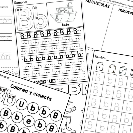 Letra B - Letra de la Semana. 12 Hojas de trabajo | PreK & Kindergarten