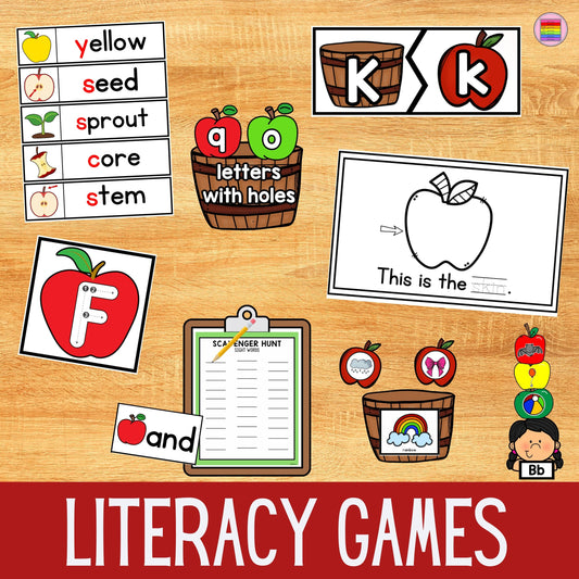 Apples Theme Centers Math & Literacy Games | PreK,Kindergarten & Elementary