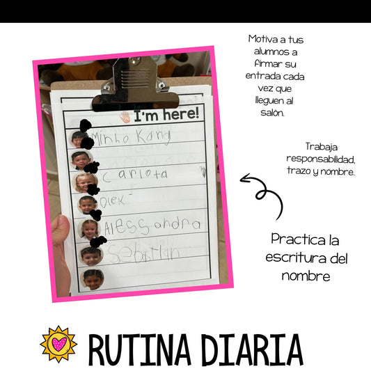 Hoja de asistencia. Practica del nombre. Regreso a Clases. Preescolar y Primaria