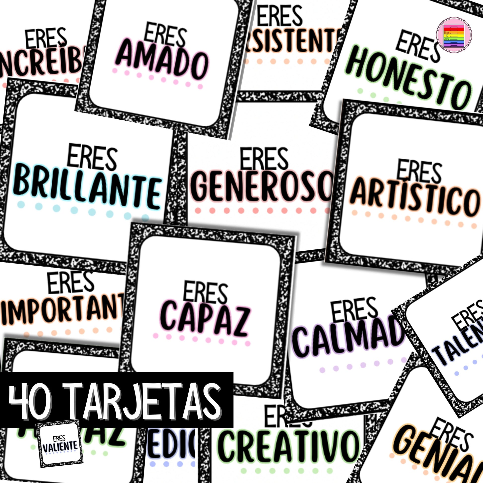 Incluye: 40 tarjetas con mensajes positivos, dos letreros y 2 páginas de afirmaciones.