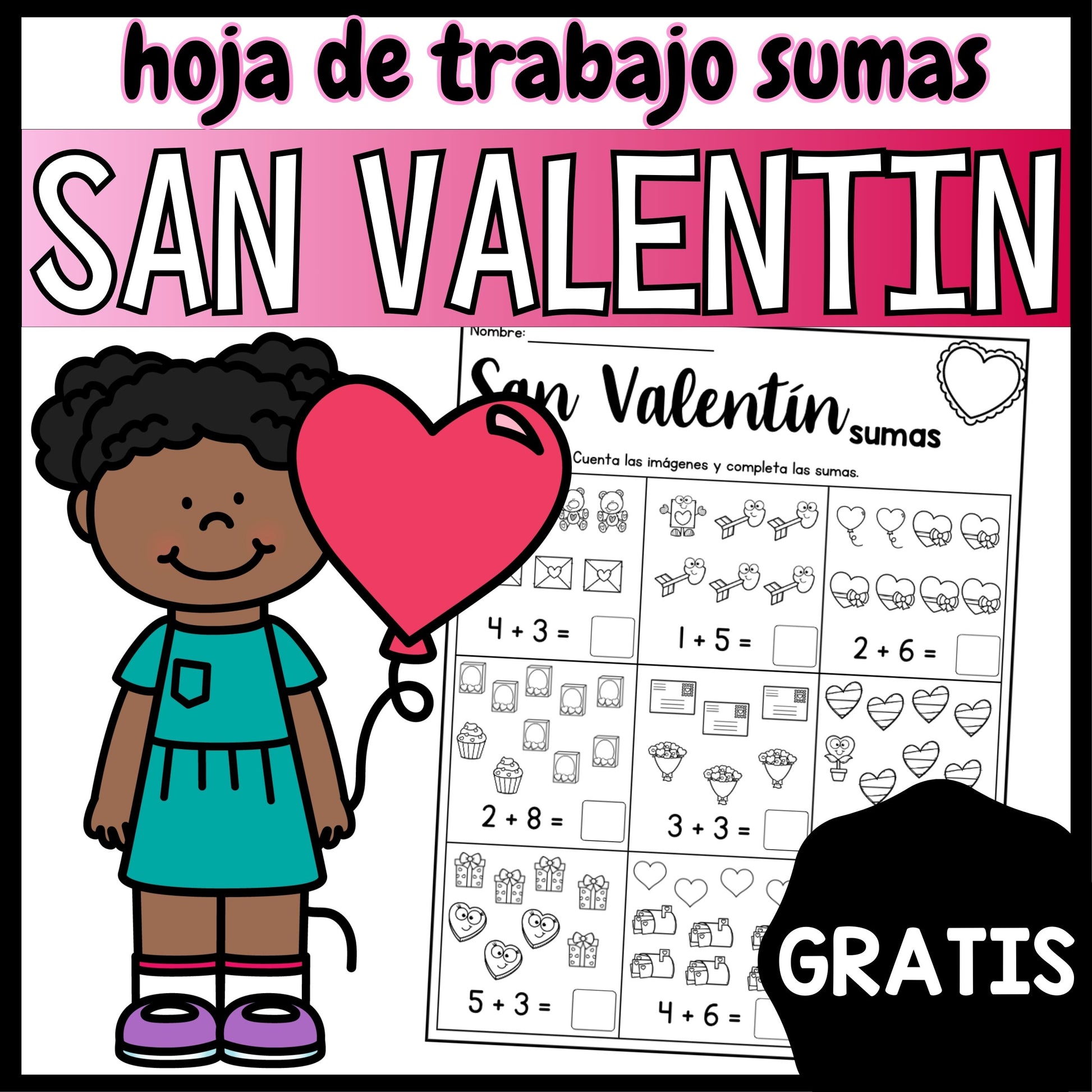 GRATIS Sumas San Valentin. Hoja de trabajo. Preescolar y Primaria