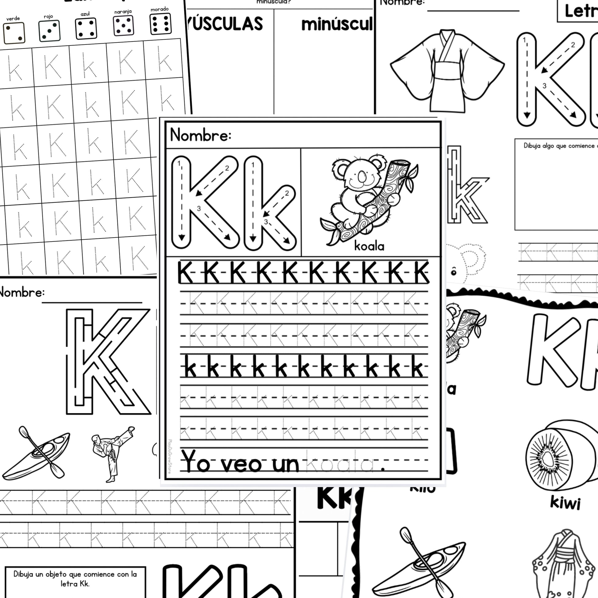 Letra K - Letra de la Semana. 12 Hojas de trabajo | Preescolar y Primaria