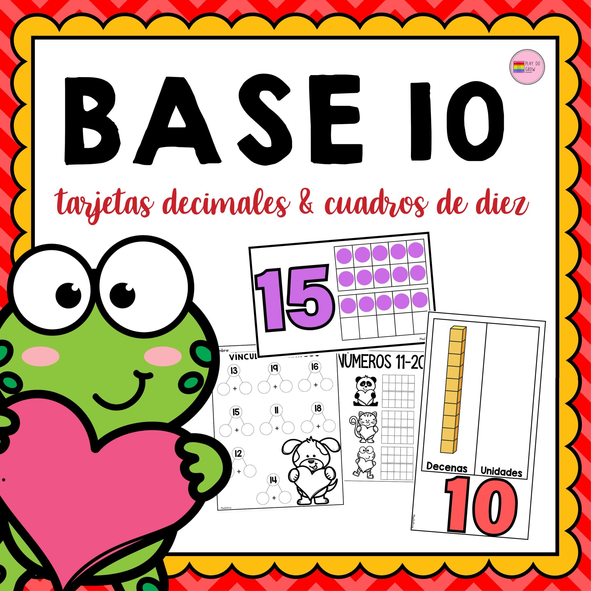 Incluye: 10 tarjetas de base 10 para completar con cubos, 10 tarjetas de cuadro de diez completos, 10 tarjetas de cuadro de diez para completar y 2 hojas de registro.