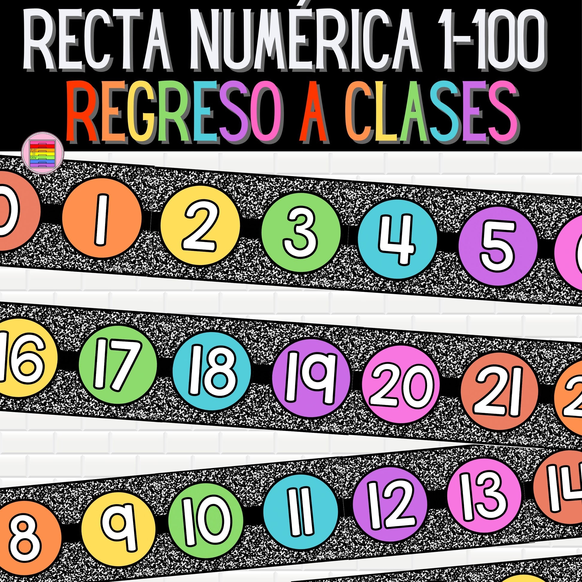 Incluye: recta numérica del 0 al 100 con corte cada 10 números a color.