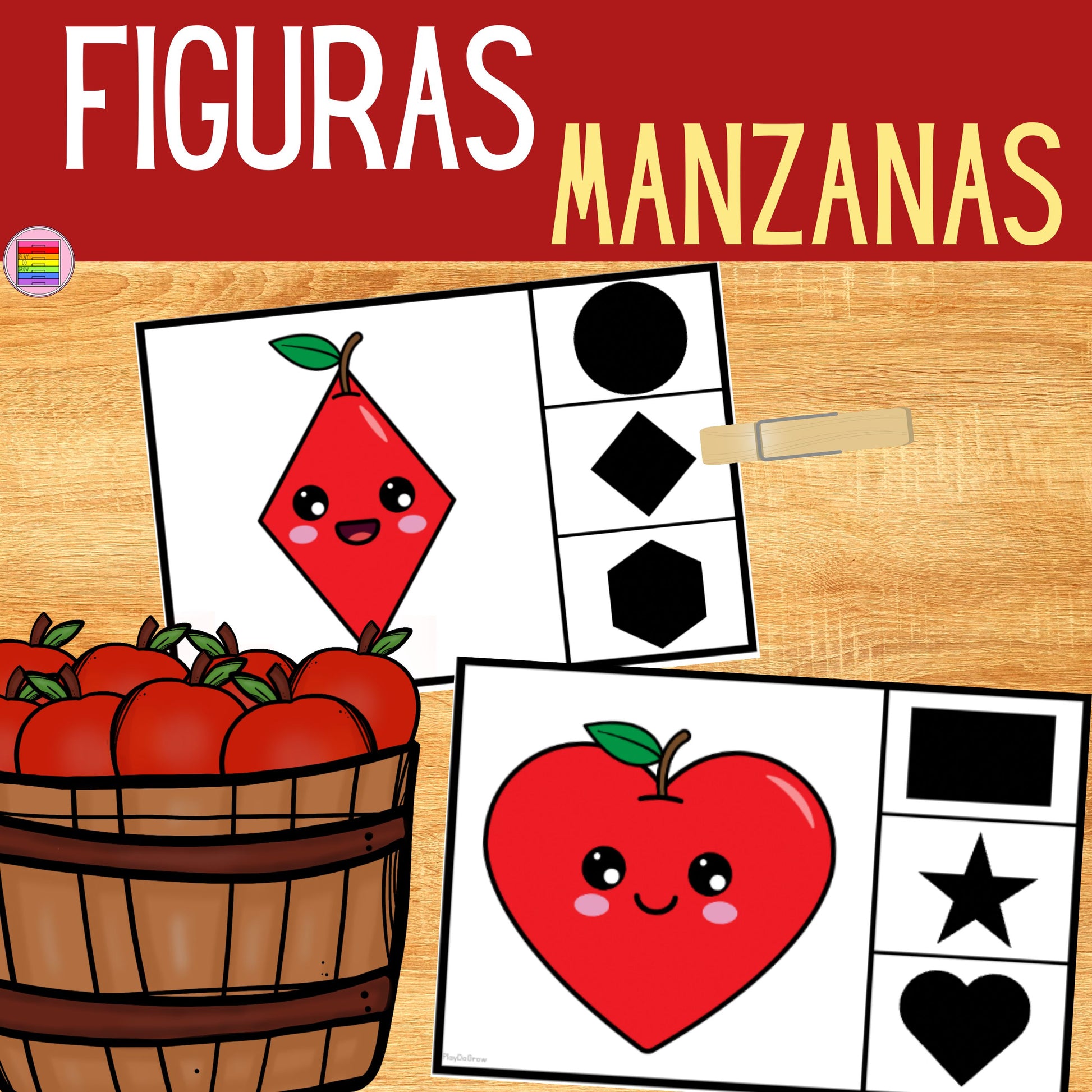 Tarjetas de Figuras Manzanas | Juego de Geometría. Preescolar y Primaria